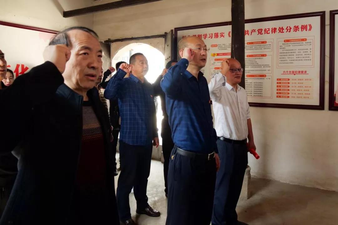 传承百年不忘初心华夏到处有忠魂,赓续世纪牢记使命神州遍地埋烈骨。全体党员怀着崇敬的心情瞻仰烈士纪念碑,通过默哀、鞠躬、敬献花篮等仪式表达对革命英烈的深切缅怀。祭扫仪式结束后,前往老街参观红九师政治部旧址,追寻红九师师长段德昌的英雄足迹,聆听革命故事、接受党史教育,重温入党誓词,唤醒党员不忘初心、牢记使命的革命意识。