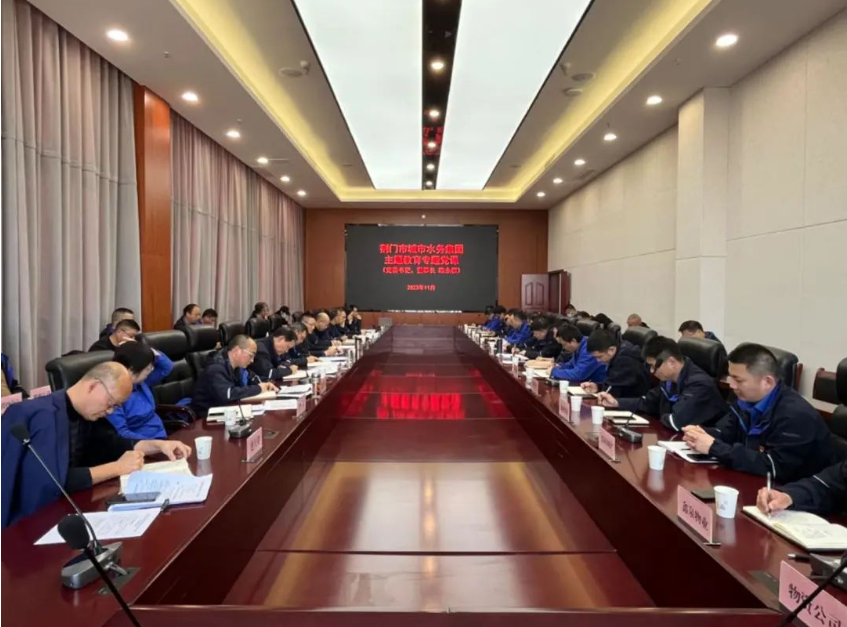 按照市委主题教育相关要求,11月21日下午,荆门市城市水务集团有限公司(以下简称集团)党委书记、董事长陈永根以“凝心铸魂学思想 主动作为谋发展”为题,为集团各单位、部门负责人及各支部书记讲授学习贯彻习近平新时代中国特色社会主义思想主题教育专题党课。市政府国资委副主任呙梅临出席会议。