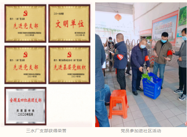一是组建“党员突击队”,关键时刻勇挑重担。以党员和入党积极分子为主力,常态化组建“高峰保供”突击队、“水质保障”突击队和“创质增效”党员先锋队,有效提升出水水质,为安全、优质、稳定供水提供强有力的保障。支部党员先后荣获“荆门市抗击新冠肺炎疫情先进个人”“全市优秀共产党员”等荣誉称号。二是打造红色精益班组,营造氛围提升素养。通过“党建+6S管理”模式,鼓励党员大胆创新,降本增效,积极营造全员争先创优的良好氛围。支部青年党员钟志兵利用平日所学自己动手修好了一台溶氧仪,为公司节省更换成本1.2万元;党员严伟自行设计制作UV5比色皿槽和手动固相萃取装置,为公司节约购买费用数十万元;预备党员李为龙仅花费100元,解决了提升泵流量计无显示、无计量的突发故障,节省近万元维修费用。三是坚持党建带团建,积极履行社会责任。将三水厂团组织打造成关爱雄峰村留守儿童的先锋前哨站,扎实开展“爱满四季促成长”等活动,荣获“全国五四红旗团支部”称号。定期开展深化“一下三民”实践活动和“供水服务进社区”活动,为企业、社区和居民排忧解难,先后被市委组织部授予“五星级党组织”称号,被市委、市政府授予“荆门市产业转型发展类先进集体”。