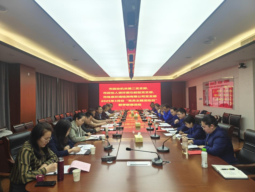 3月26日,市政协机关第二党支部、市政协人资环委功能型党支部与荆门水务咏泉党支部联合开展主题党日联学联做活动。活动以"智慧水务+绿色发展"为主题,旨在以"学研践"三位一体模式推动党建与业务互融共进。