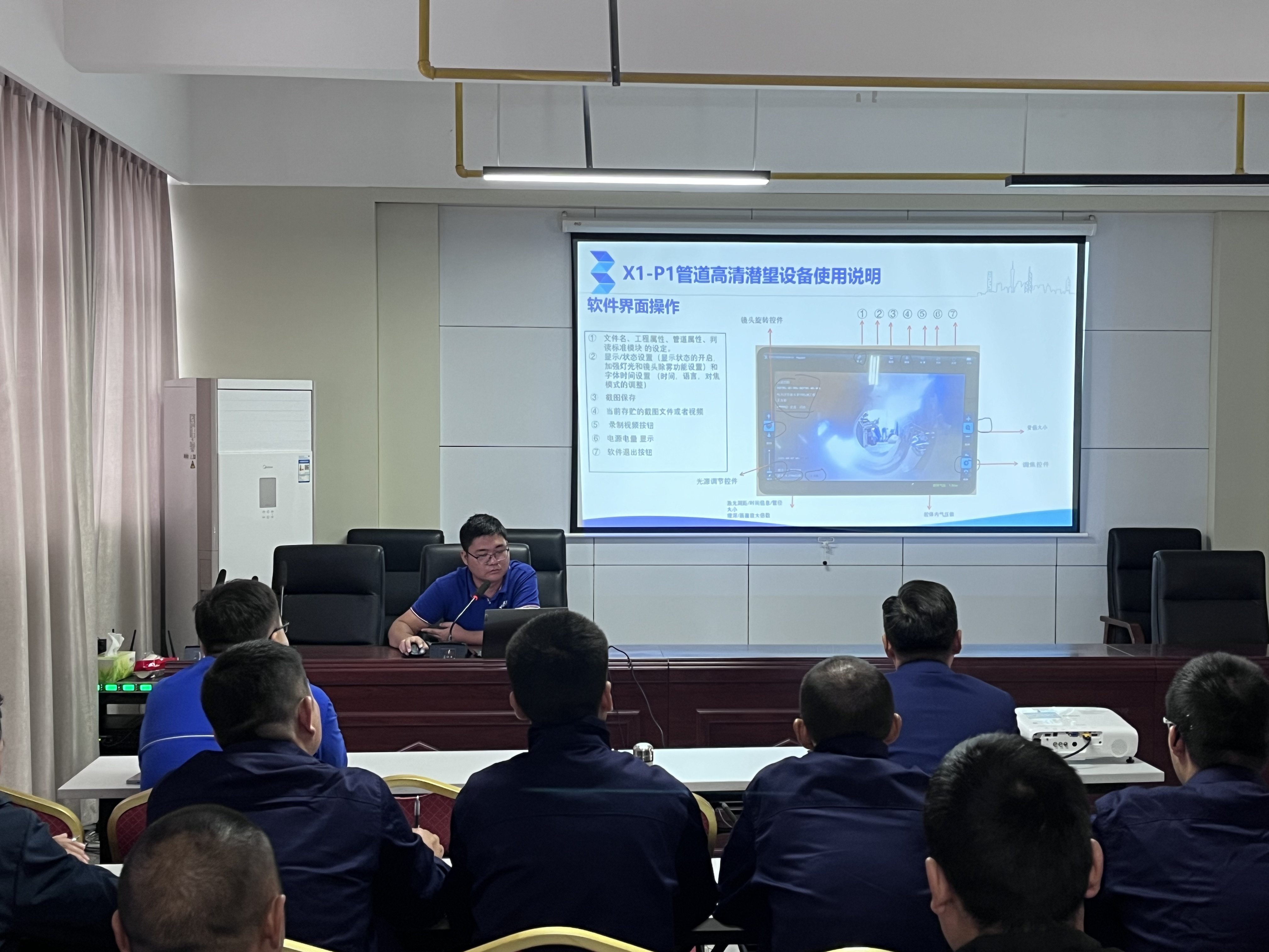 本次培训采用“理论+实操”相结合模式。理论授课环节,授课老师围绕CCTV管道检测机器人工作原理、设备结构组成、操作规范及安全注意事项等内容,通过PPT展示和应用案例开展系统授课。参训员工全神贯注,详细记录操作要点,积极与老师互动交流,对这位“新伙伴”有了初步的理论认知。
