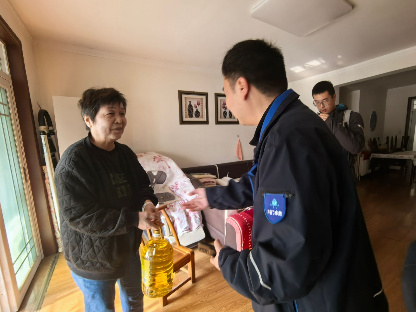 活动尾声,慧泉房产党支部党员代表与社区工作人员携带暖心礼包上门探望高龄及困难老人。走访中,慰问人员细致询问老人身体和生活状况,志愿者主动留下联系方式,承诺提供持续关注与帮助,让组织的关怀直抵人心,为重阳佳节增添浓浓暖意。