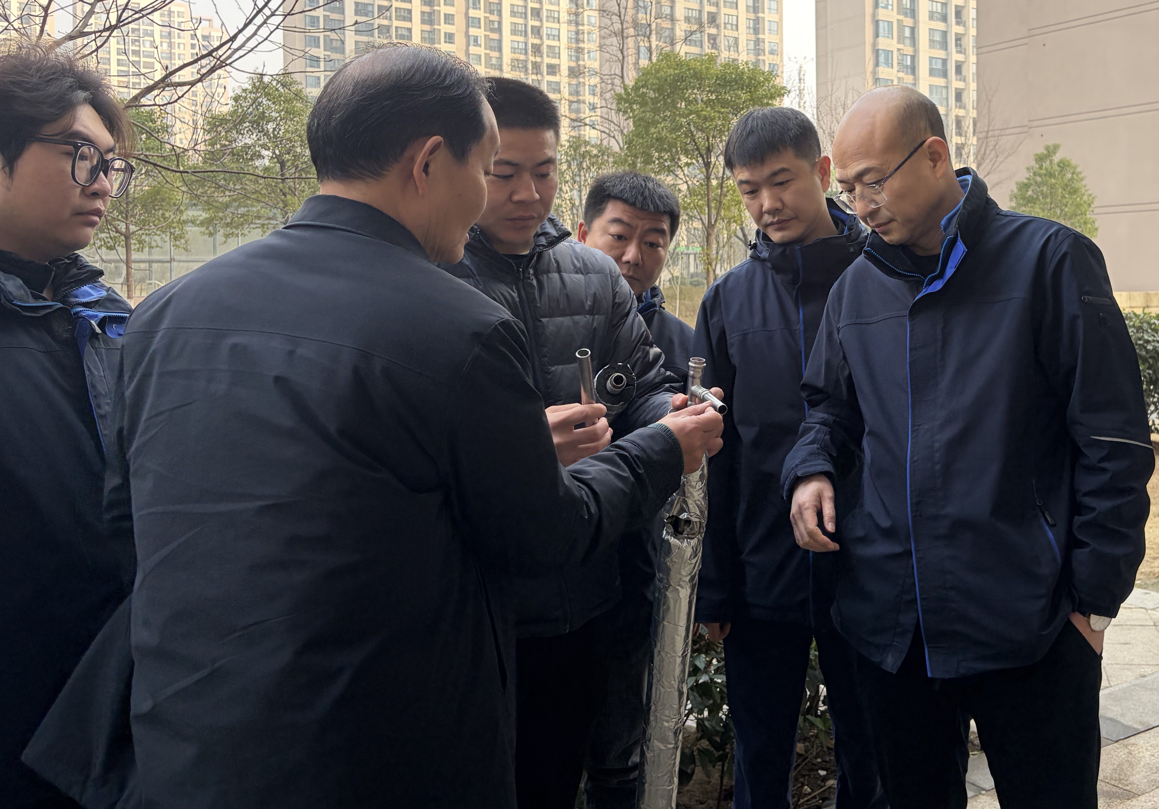 陈永根一行先后前往天鹅小区、响岭小区,实地察看直饮水管道防冻保护破损修复情况。他要求,结合实际改进管道直饮水入户设计方案,采取有效措施防范应对低温冰冻天气,保障居民用水无忧。