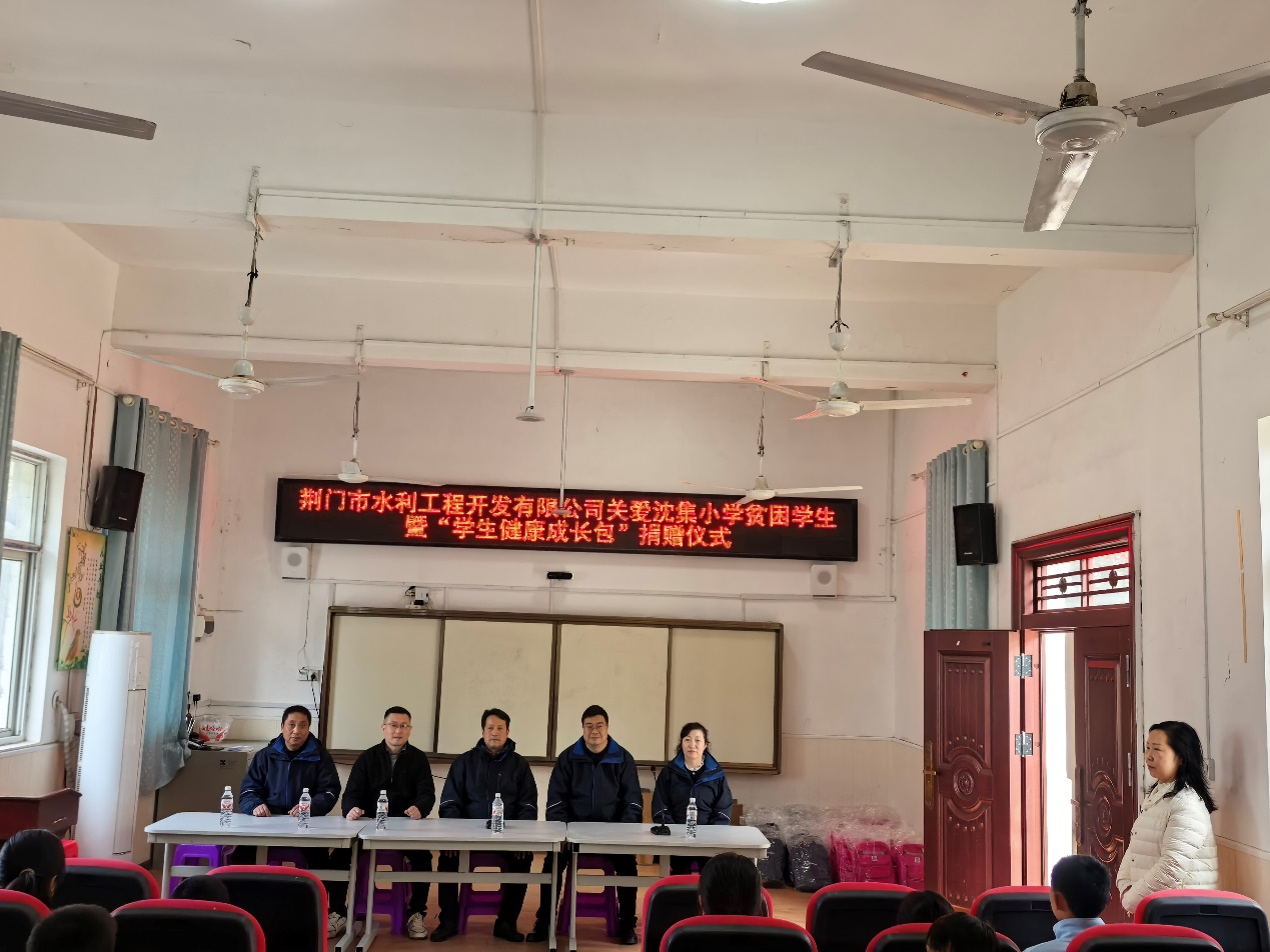 3月11日下午,荆门市水利工程开发有限公司(以下简称“荆门水发公司”)走进沙洋县沈集镇中心小学,开展市关工委组织的“关爱青少年健康成长包”专项捐赠活动。