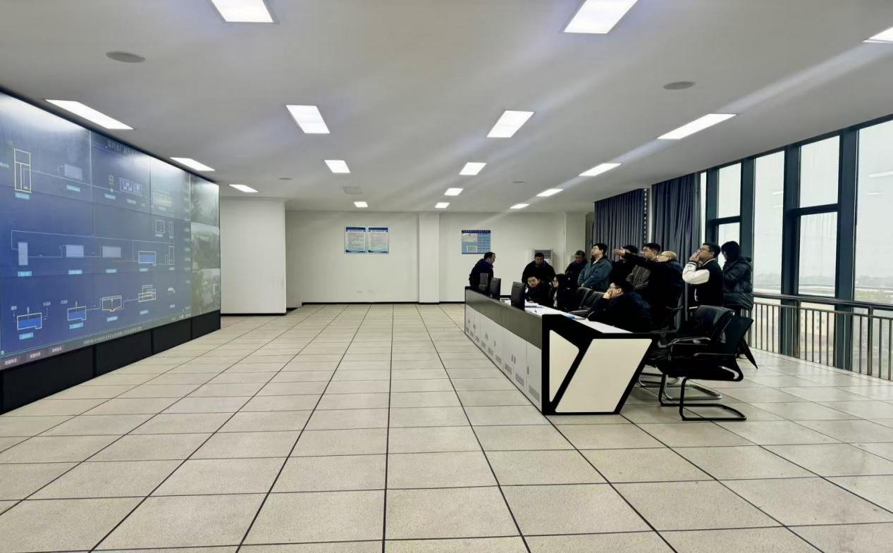 考察团分赴集团调度指挥中心与四水厂。在调度指挥中心,实地察看智慧水务平台运行成效,围绕供水全网监测、智能调度等技术与管理难点深入交流。在四水厂,重点察看生产工艺、自动化设备及节能降碳设施,聚焦次氯酸钠制备环节的能耗控制、安全运维与成本管控。