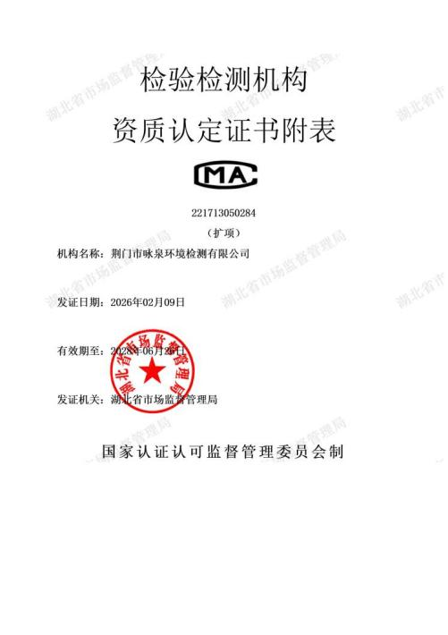 近日,荆门市咏泉环境检测有限公司顺利通过CMA资质扩项评审,检测能力全面升级,实现水、气、土、声四大领域全要素覆盖。检测参数由145项增至299项,检测方法达434种,综合检测能力位居全省前列。